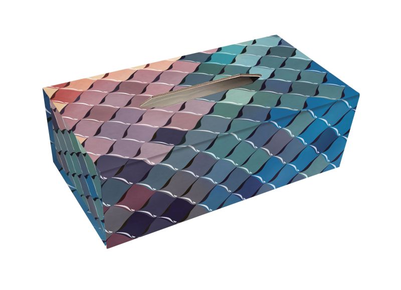 Kartonnen doos met magnetische sluiting, ontworpen als papieren doekjes dispenser. Geschikt voor de meeste standaard dispensers.